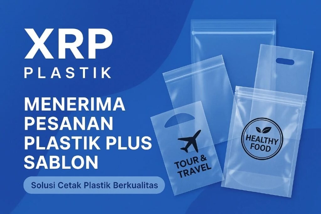 XRP PLASTIK menerima pesanan plastik sablon berbagai jenis (HD, OPP, PP, PE, zipper). Custom ukuran & ketebalan. Produksi cepat, kualitas rapi.